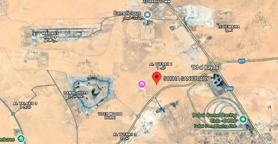 Prime Dubailand (Al Yufrah) location with serene and peaceful surroundings.